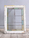 イギリス アンティーク ステンドグラス 幾何学 11255 イギリスの蚤の市で見つけてきたアンティーク ステンドグラス窓(木枠)です。 イギリスの古いおウチから取り外されたものです。 ショップディスプレイのアクセントにも お すすめです。 ガラス部、キズ、気泡 (焼成時)、シワ は有ります ( 画像参照) が、ヒビ等の大きなダメージは有りません。 木枠は当時のものです、 ペイント剥がれや痛みがあります。 古い物とご理解下さい。 大きなダメージ無くコンディション良好です。