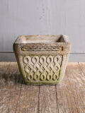イギリス アンティーク セメント製 プランター 植木鉢 1195 イギリスの古セメント製のプランター(植木鉢) です。色褪せた風合いが良い雰囲気です。所々欠けが有りますが、 大きなダメージ無くコンディション良好です。 斑入りのギボウシのような植物が似合いそうです。 コケのような色は枯れて風合いが変わるかもしれません。