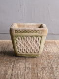 イギリスの古セメント製のプランター(植木鉢) です。色褪せた風合いが良い雰囲気です。所々欠けが有りますが、 大きなダメージ無くコンディション良好です。 斑入りのギボウシのような植物が似合いそうです。 コケのような色は枯れて風合いが変わるかもしれません。