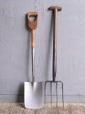 イギリスの蚤の市で見つけてきた古い ガーデンフォーク&スコップです。 使い込まれ風合いがとても素敵です。 ガーデンオーナメントとして、 置いておくだけでも絵になります。 お花屋さんや 雑貨屋さん等ショップディスプレイの アクセントにもオススメです 。 大きなダメージ無くコンディション良好です
