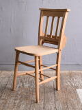 イギリスの、アンティーク 木製チャーチチェア です。 一枚板の座面の木目がアンティークならではの良い雰囲気です。 所々、長年の使用、乾燥により磨耗、アタリ、があります。 構造上、背もたれに体重を乗せると、座面と後ろ脚のつなぎの役目をしているのが、 マイナスビスだけの構造の為(よく言えばシンプルな造り)、少しぐらつきます。 使用目的は教会での行事用ですので、 姿勢よく座る前提の為、背もたれに体重を掛ける構造にはなっておりません。 大きなダメージ無くコンディション良好です。