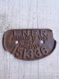 イギリスの蚤の市で見つけてきたアンティーク レイルウェイサイン(鉄道標識)です。ロンドン・アンド・ノース・イースタン鉄道LNER(London and North Eastern Railway) 分厚い鋳物の質感が良い感じです。お部屋のインテリアにしたり お花屋さんや雑貨屋さん等 ショップディスプレイの アクセントにもオススメです。欠損部分はありますが、雰囲気悪くないです。