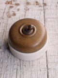 古いイギリス製 真鍮製スイッチです。 部品の欠品はなさそうです。 大きなダメージ無くコンディション良好です。 テスターにて導通チェックOK 取り付けの際には必ず電気工事業者に依頼して下さい。 よろしくお願い致します。蓋;真鍮製 ベース+;陶器製
