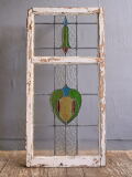イギリスの蚤の市で見つけてきたアンティーク ステンドグラス窓(木枠)です。 イギリスの古いおウチから取り外されたものです。 ショップディスプレイのアクセントにも お すすめです。 ガラス部、キズ、気泡 (焼成時)、シワ スジは有ります ( 画像参照) 木枠は当時のものです、 ペイント剥がれや痛み、ヒネリがあります(画像参照)。 古い物とご理解下さい。 大きなダメージ無くコンディション良好です。 商品状態詳細は、画像にてご確認ください。