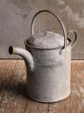 イギリスの蚤の市で見つけてきた古い ブリキジョウロです。 経年の風化によるシャビーな風合いがとても素敵です お庭の水遣りや、フラワーベースとして、 お部屋のインテリアのアクセントとして 存在感たっぷりです。 雑貨屋さんやお花屋さんのディスプレイにもおすすめです。 ハンダ補修箇所に滲む水漏れが有ります