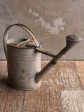 イギリスの蚤の市で見つけてきた古い フレンチブリキ製ジョウロです。 大きいサイズですので、屋外での使用に適しています。 蓮口が大きく頭でっかちな雰囲気がとてもカワイイです。経年の風化によるシャビーな風合いがとても素敵です お庭の水遣りや、フラワーベースとして、 お部屋のインテリアのアクセントとして 存在感たっぷりです。 雑貨屋さんやお花屋さんのディスプレイにもおすすめです。