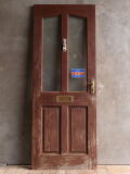 イギリスの蚤の市で見つけてきた古い、ガラス入り木製ドアです。使い込まれた風合いがとても素敵です。真鍮製ドアノッカー、レタースロット、レバーハンドルが付いています。 立てかけてお部屋のインテリアにしたり お花屋さんや雑貨屋さん等 ショップディスプレイの アクセントにもオススメです。 桟、カマチが長年の使用により磨耗があります。取り付けてご使用の場合加工、調整が必要です。 ガラス部、焼成時の気泡シワ、傷(画像参照)がありますが、 ヒビ、チップはありません。ペイントの劣化は少しづつ進行します。 ご注文時期により現状とは多少状態が違っている場合もございますので、ご購入前にお問い合わせください 。 古いものとご理解ください。鏡板に割れが有ります(画像参照)