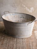 イギリスの蚤の市で見つけてきた古い ブリキ製のウォッシングタブです。 少し大きいサイズです。使い込まれた風合いがとても素敵です。 風化したブリキの質感がとても素敵です。 壁に吊り下げたり、土を混ぜたり、と色々と使い道がありそうです。 ガーデンインテリアのアクセントにオススメです。 お花屋さんや雑貨屋さん等ショップディスプレイにもオススメです。所々ゆがみはあります。(画像参照) 大きなダメージ無くコンディション良好です。