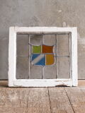 イギリスの蚤の市で見つけてきたアンティーク ステンドグラス窓(木枠)です。 イギリスの古いおウチから取り外されたものです。 ショップディスプレイのアクセントにも おすすめです。 ガラス部、キズ、気泡 (焼成時)、シワ スジは有ります ( 画像参照) 木枠は当時のものです、 ペイント剥がれや痛みがあります。 古い物とご理解下さい。 大きなダメージ無くコンディション良好です。 商品状態詳細は、画像にてご確認ください。