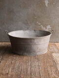 イギリスの蚤の市で見つけてきた古い ブリキ製のウォッシングタブです。 少し大きいサイズです。使い込まれた風合いがとても素敵です。 風化したブリキの質感がとても素敵です。 壁に吊り下げたり、土を混ぜたり、と色々と使い道がありそうです。 ガーデンインテリアのアクセントにオススメです。 お花屋さんや雑貨屋さん等ショップディスプレイにもオススメです。所々ゆがみはあります。(画像参照) 大きなダメージ無くコンディション良好です。