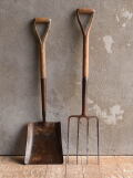イギリスの蚤の市で見つけてきた古い ガーデンフォーク&スコップです。 使い込まれ風合いがとても素敵です。 ガーデンオーナメントとして、 置いておくだけでも絵になります。 お花屋さんや 雑貨屋さん等ショップディスプレイの アクセントにもオススメです 。 大きなダメージ無くコンディション良好です