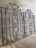 イギリスの蚤の市で見つけてきた古い、アイアンフェンス(一対)です 。 劣化した塗装や錆びがとてもよい風合いです。 お部屋の間仕切り壁面ディスプレイやガーデンゲートにオススメです。 お花屋さんや雑貨屋さん等ショップディスプレイの アクセントにも オススメです。 大きなダメージ無くコンディション良好です。