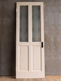 イギリスの蚤の市で見つけてきた古い、木製ドアです。 使い込まれた風合いがとても素敵です。クローム製レバーハンドルが付いています。立てかけてお部屋のインテリアにしたり お花屋さんや雑貨屋さん等 ショップディスプレイの アクセントにもオススメです。 桟、カマチが長年の使用により磨耗、取り外し時の傷があります。(画像参照)取り付けてご使用の場合加工、調整が必要です。ガラス部、傷(画像参照)がありますが、 ヒビ、チップはありません。ペイントの劣化は少しづつ進行します。 ご注文時期により現状とは多少状態が違っている場合もございますので、ご購入前にお問い合わせください 。 古いものとご理解ください。