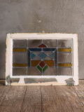 イギリスの蚤の市で見つけてきたアンティーク ステンドグラス窓(木枠)です。 イギリスの古いおウチから取り外されたものです。 ショップディスプレイのアクセントにも おすすめです。 ガラス部、キズ、気泡 (焼成時)、シワ スジは有ります ( 画像参照) 木枠は当時のものです、 ペイント剥がれや痛みがあります。 古い物とご理解下さい。 大きなダメージ無くコンディション良好です。 商品状態詳細は、画像にてご確認ください。