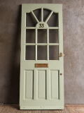 イギリスの蚤の市で見つけてきた古い、木製ドアです。真鍮製レタースロットが付いています。使い込まれた風合いがとても素敵です。立てかけてお部屋のインテリアにしたり お花屋さんや雑貨屋さん等 ショップディスプレイの アクセントにもオススメです。 桟、カマチが長年の使用により磨耗があります。取り付けてご使用の場合加工、調整が必要です。 ガラス部、キズ(画像参照)がありますが、 ヒビ、チップはありません。