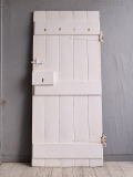 イギリスの古いお家から取り外さた、古い木製ドア(扉)です。Tヒンジ、鉄製ドアハンドルが付いています。 リノベーション や、ショップドア にご利用ください。